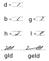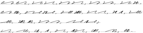 Diese aus Teilzügen der Kurrentschrift (Langschrift) abgeleiteten Zeichen sind einstufig; sie werden wie in der Kurrentschrift durch einen kurzen Aufstrich verbunden (enge Verbindung). |